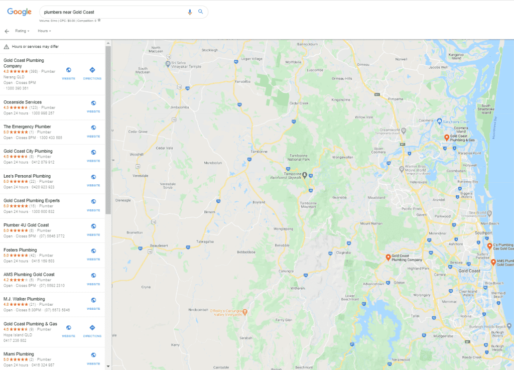 Look at the marketing efforts of your competitors. They’re online, right? We went to Google and looked for plumbers near Gold Coast. We have 12 results that match our searches. Are you one of them?
